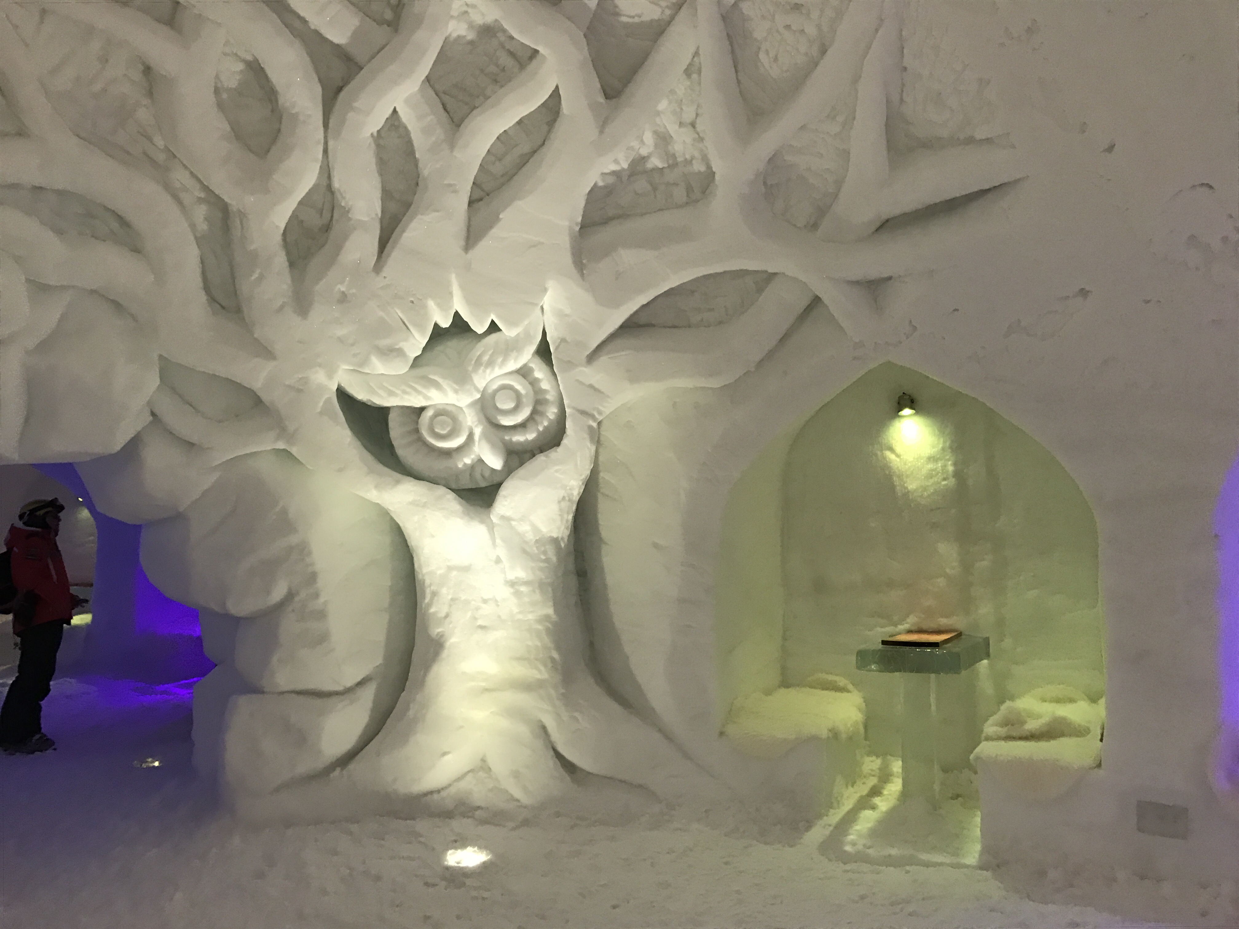 The White Lounge (an igloo bar) has electric and speakers for the music, along with alcohol, but no toilet. (It’s under the lift if you’re ever there and desperate)