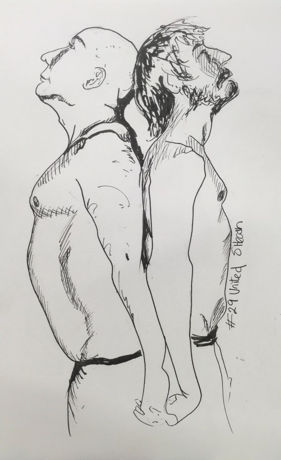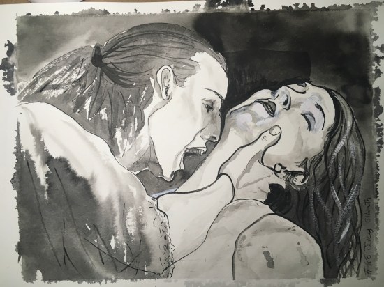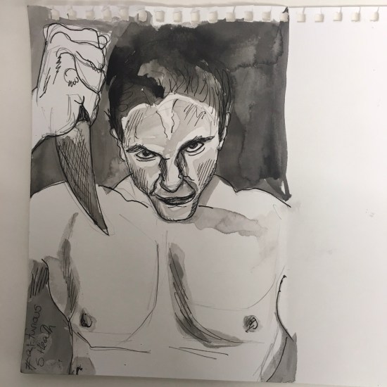 Finally, caught up and on track. Although I spent two hours on this, it didn’t all go well. However I was able to pull some of it back. Still always more to work on, faces at funny angles/foreshortening. I have managed to embrace what a splotchy wash the ink I’m using makes. Now I except […]