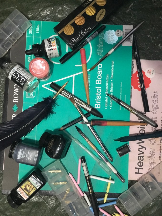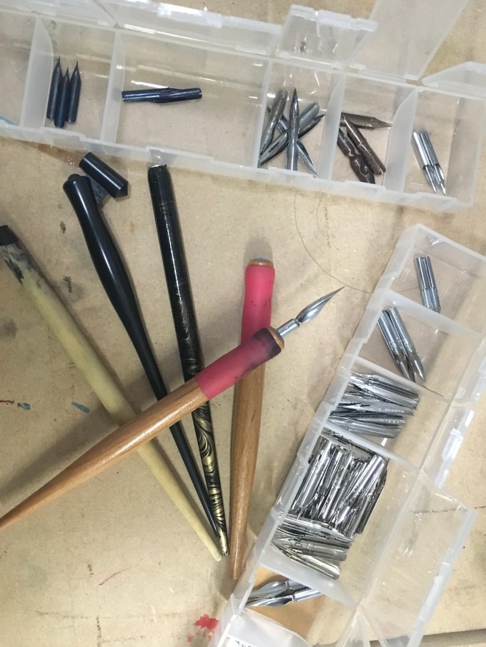 Note: I taught a couple of sessions on calligraphy and my mum decided she didn’t want her nibs anymore which is why I have such an excess.. I needed. enough for 25 people to have one each.