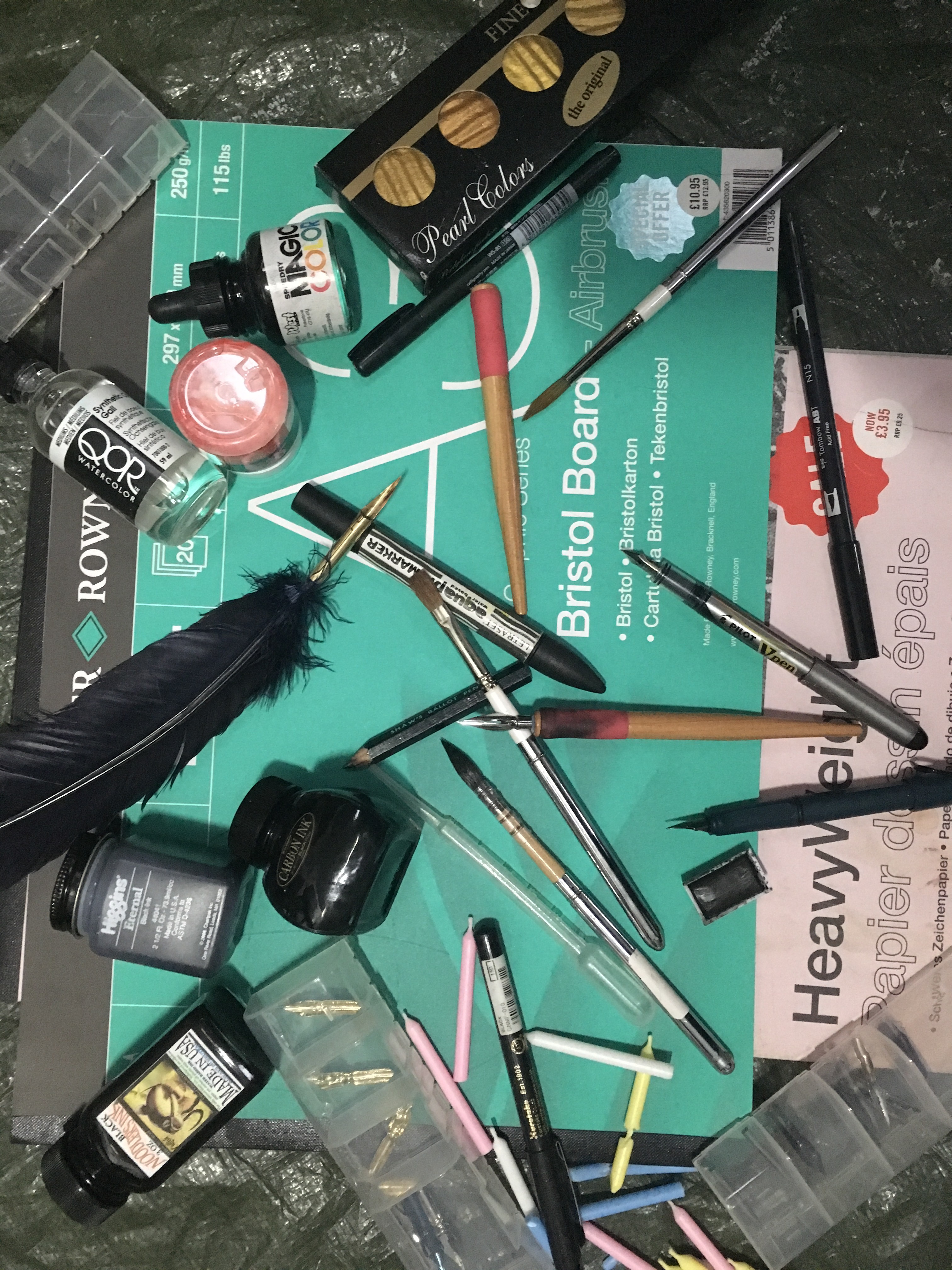 Note: I taught a couple of sessions on calligraphy and my mum decided she didn’t want her nibs anymore which is why I have such an excess.. I needed. enough for 25 people to have one each.