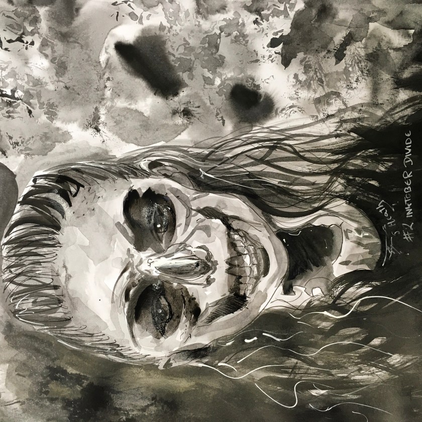 Due to a weird quirk of how I took the photo…. it came out sideways and looks better that way. So I went with it. I was originally only going to do half a skull face, because she’s divided, but I totally got into this one and I just love skulls and bones. An improvement on yesterday!