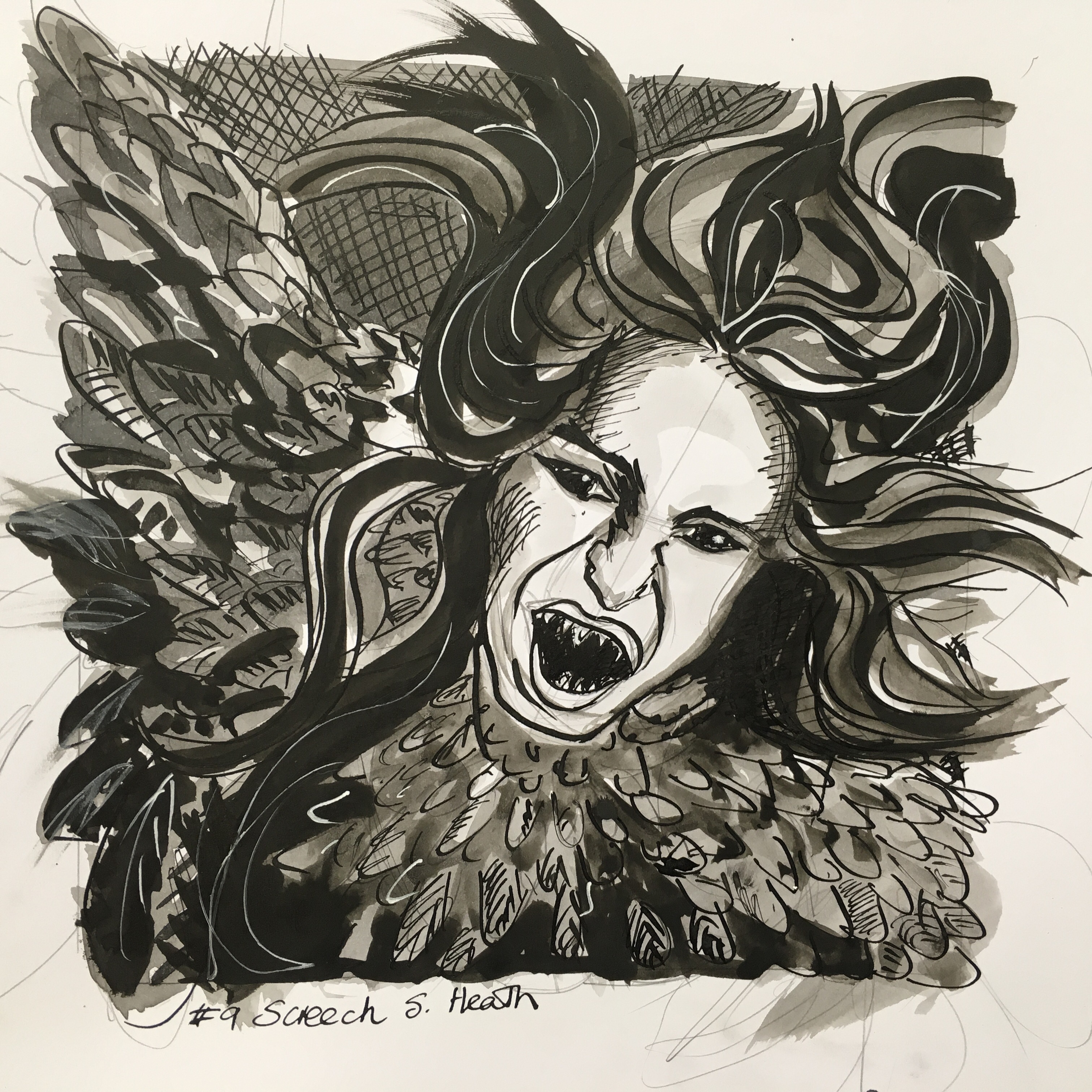 I really enjoyed this one, there’s still things I would change, but I’ve achieved what i set out to do, she has a facial expression! And it is done in ink.