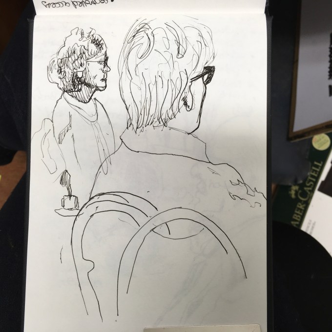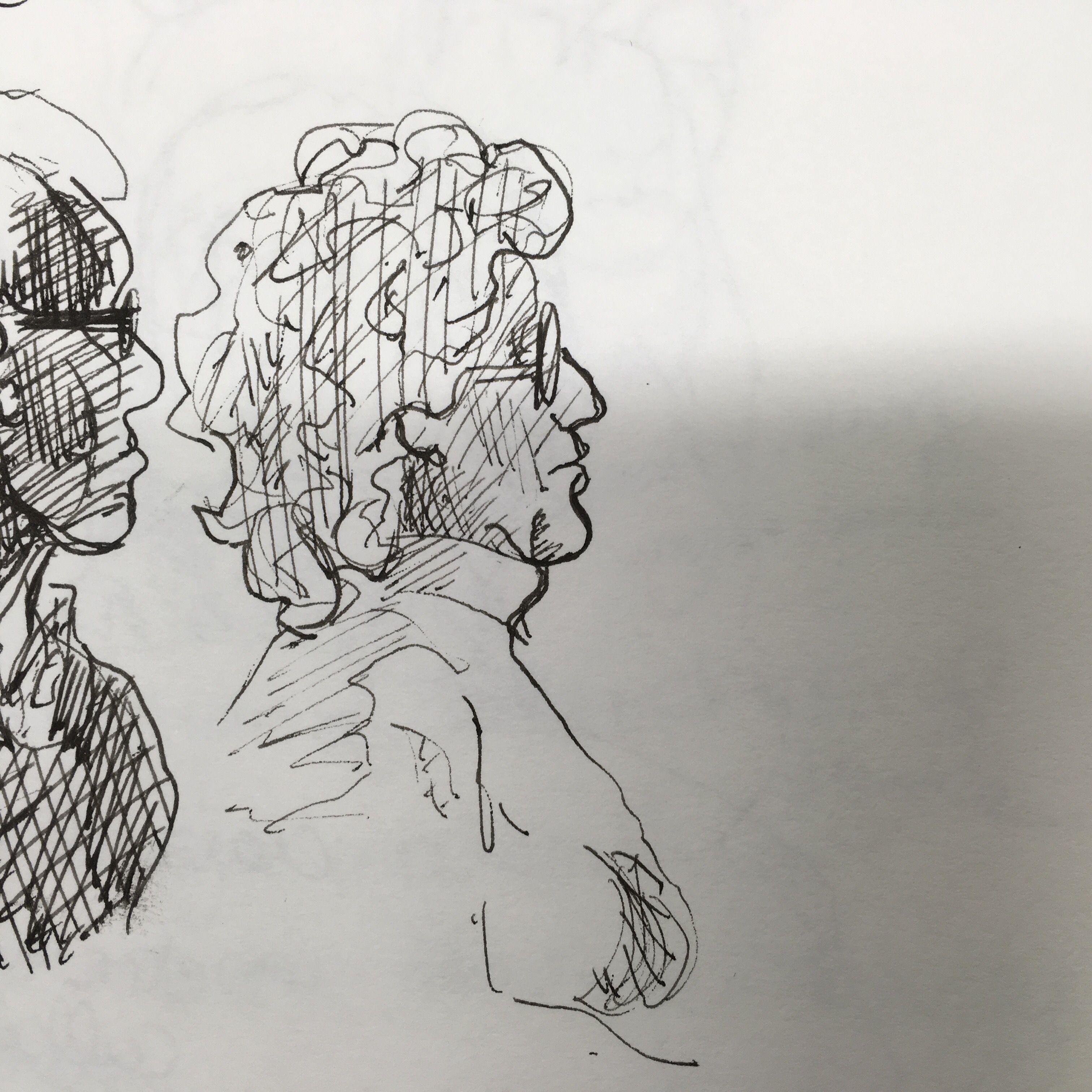 Such a great talk meant everyone was absorbed and i could stare at them as much as i liked. I didn’t dare start measuring though. Some of the sketches came out better than others. You can almost tell who moved the least from how they turned out. I shall have to remember to sit at the back next time so I can draw more people without being obvious about it.