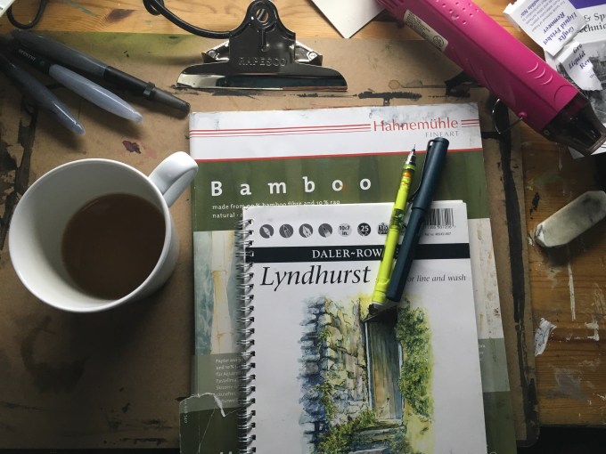 A five minute and a ten minute quick catch up sketch. Filthy is on Hahnemuhle bamboo mixed media paper and cloud is on lyndhurst, a cartridge paper that is marketed for ink and wash by daler rowney. Both sketched out with my kuru toga pencil and then inked with my Lamy safari fountain pen. Been busy with work, and i had to clear some desk space!