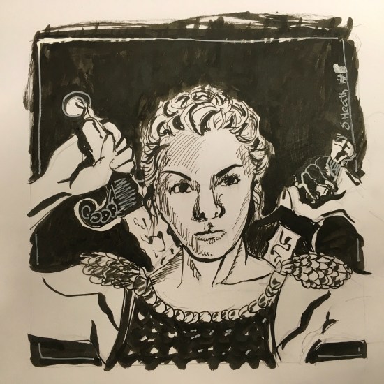 Poison What i drew on day 3… I did have a concept ready to go, but I still can’t settle on one I like. Meanwhile this handsome chap was about to loose his feathers. I used polychromos pencil, lamy safari foundtain pen, acrylic white pen marker and acrylic black ink in my a3 ebony daler […]