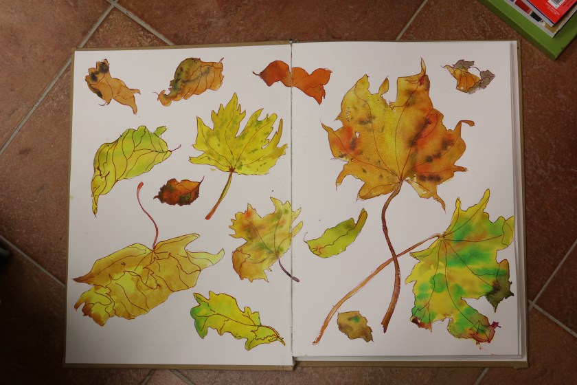 Illustration and inspiration: keeping a sketchbook by Leah Goren is the first class I’ve watched were I was inspired to do the ‘homework’. During ink toner I was desperate to paint the autumnal colours around me, and what better way than some quick ink and wash sketches?