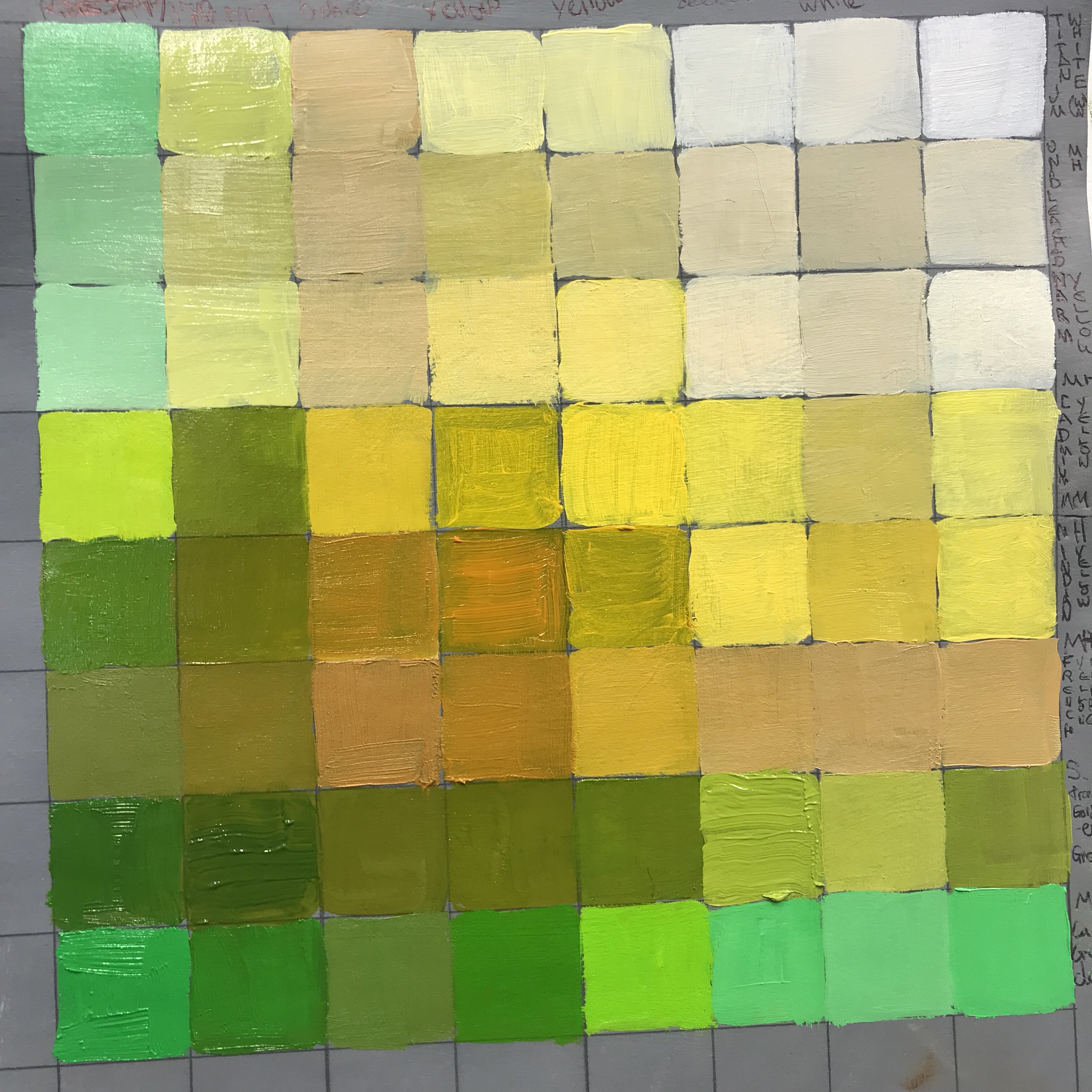 One particular exercise he recommends is doing a colour mixing chart. I’m doing this slightly different to how he recommends, as I’m doing a general overview were I paint the tube colour down the middle and mix it with the other colours in two variations, favouring the top colour on top, and the side colour on the side. I got this from Mr Otter Art Studio and Tech Yi Chie . I like the way that Mr Otters Art Studio technique gives you more variation, but I am forever painting the wrong colour in the wrong square, even though I have just started.