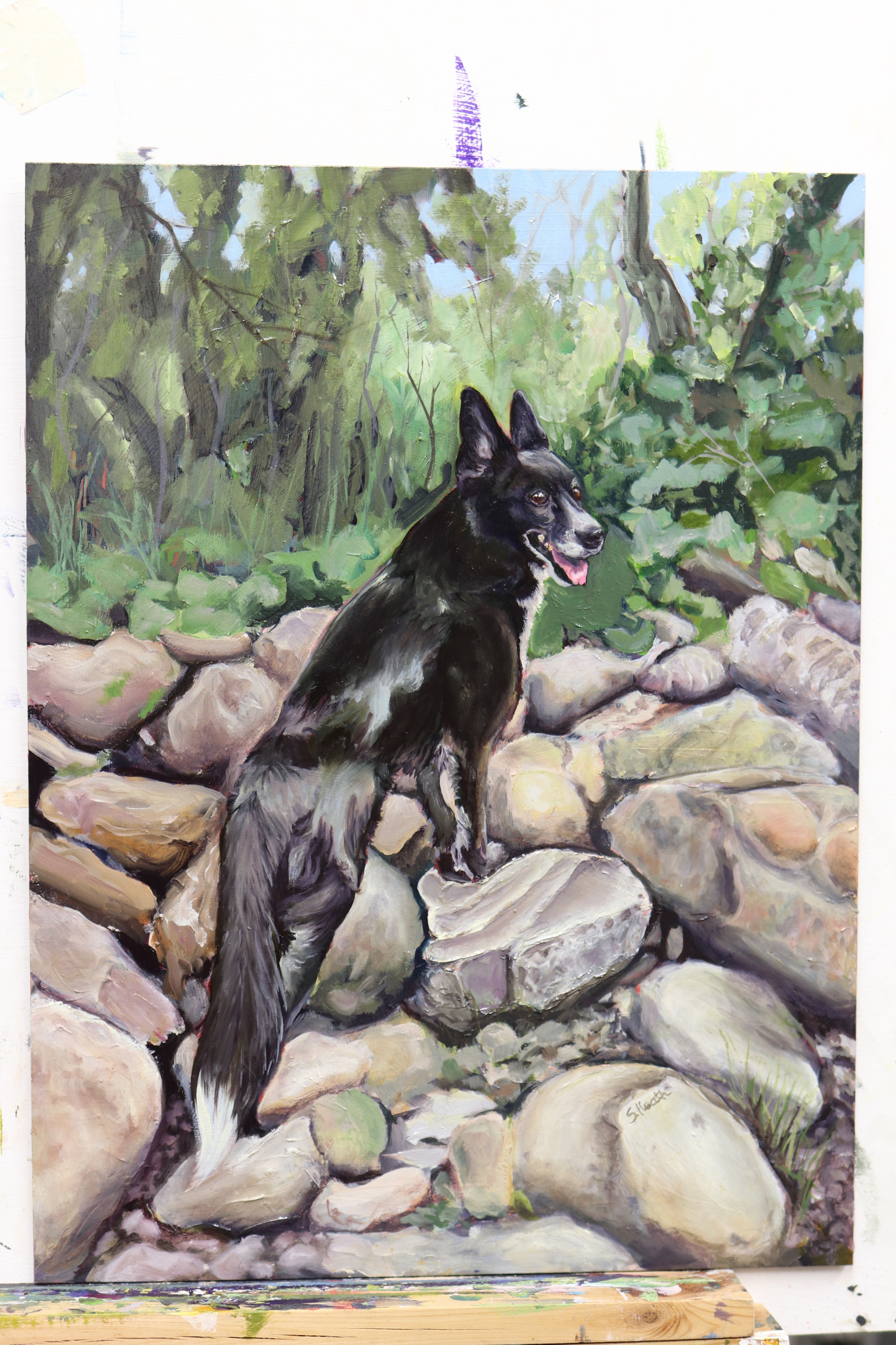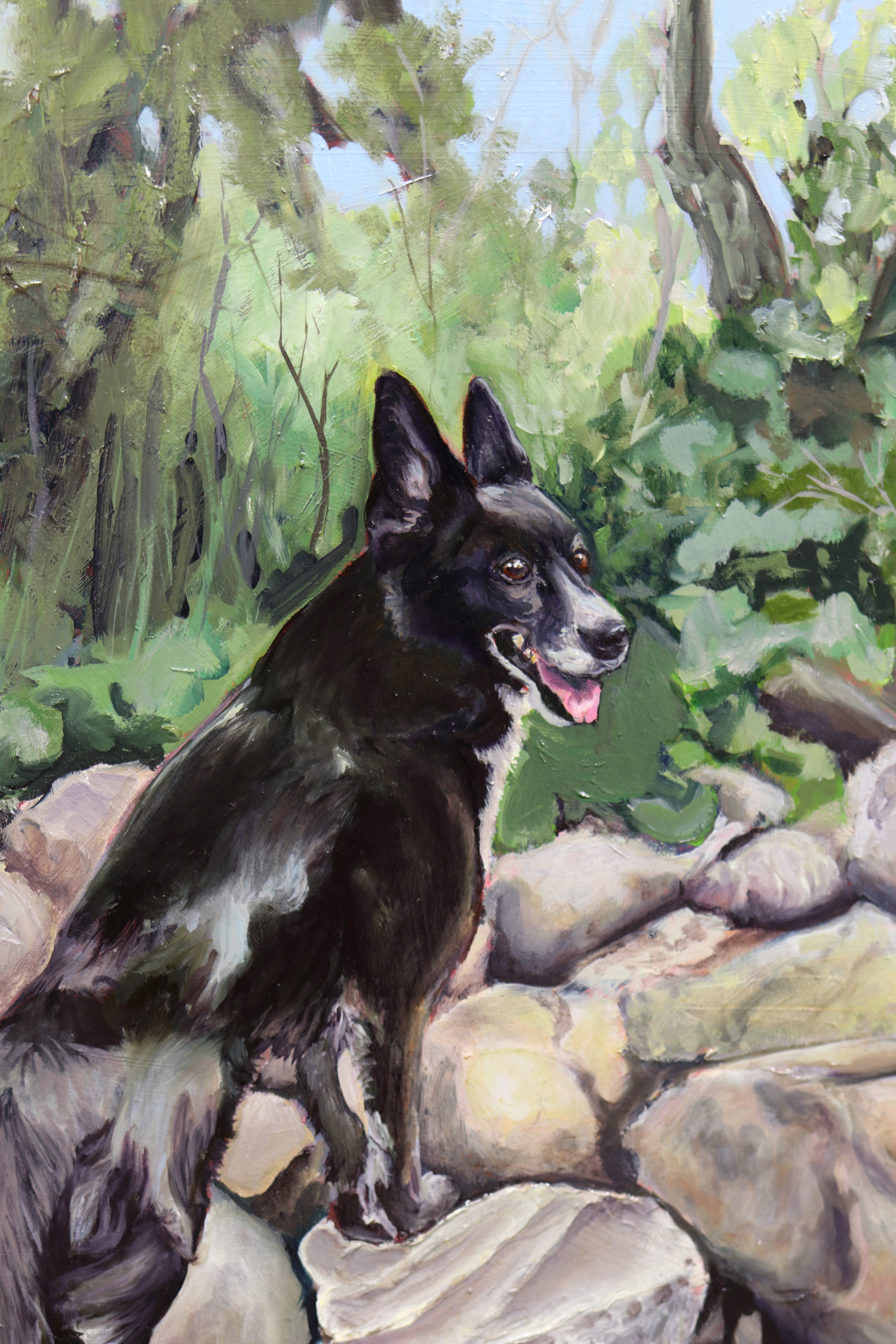 She’s finished! Took me quite a while as she got put on hold for commissions and when I was sick. I also had an attack of I’m going to mess this up and put off this final finishing touches. There was also the emotional component as Aya is sadly no longer with us. She was such a big character. We got her as a boarder collie cross, and only having had boarder collies before meant that we thought we’d gotten a crazy dog (the fact she didn’t like men immediately and black dogs was telling of her past).