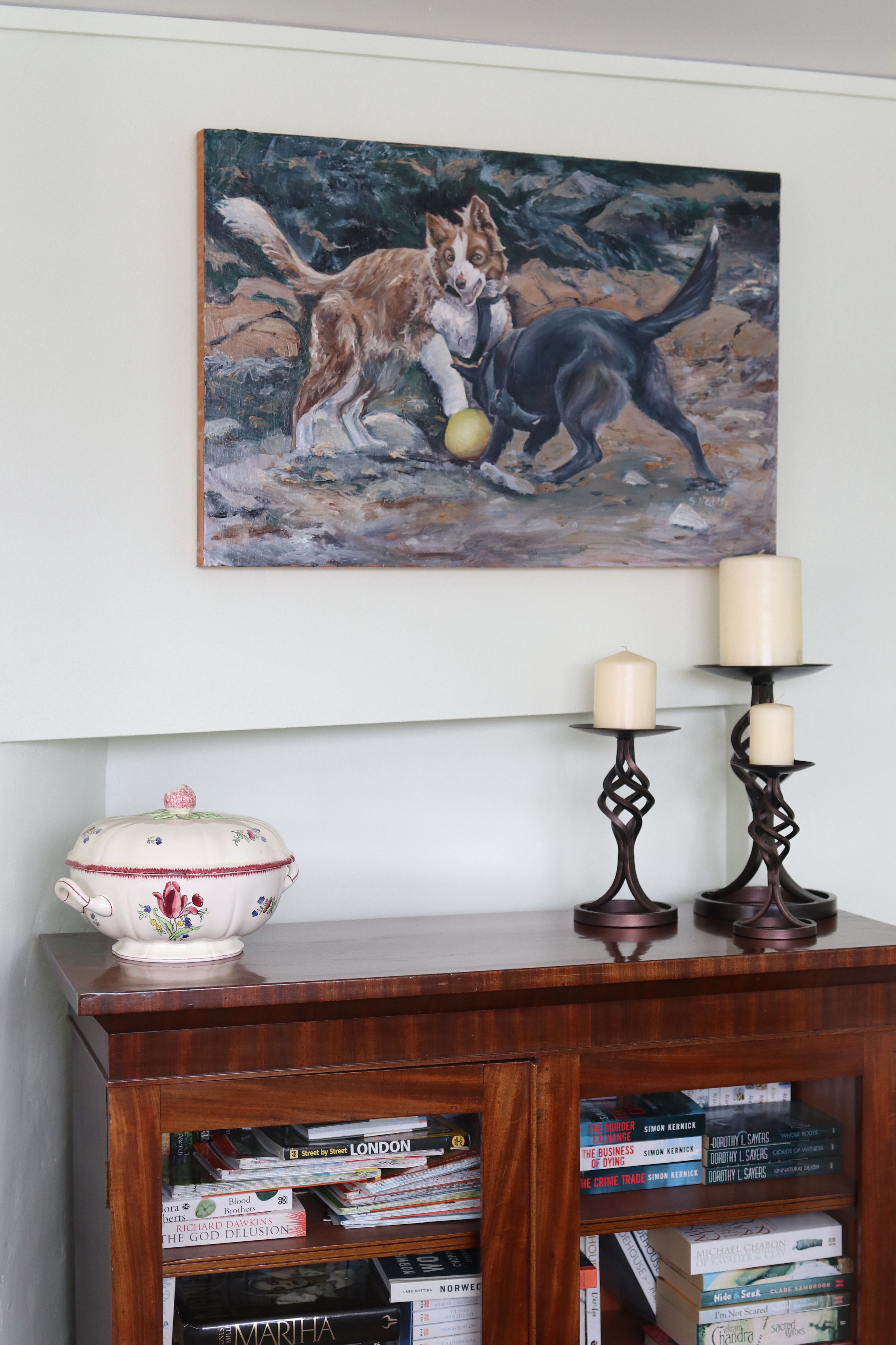 And here’s another view of her, from a much older painting, with our other old dog, Sam.