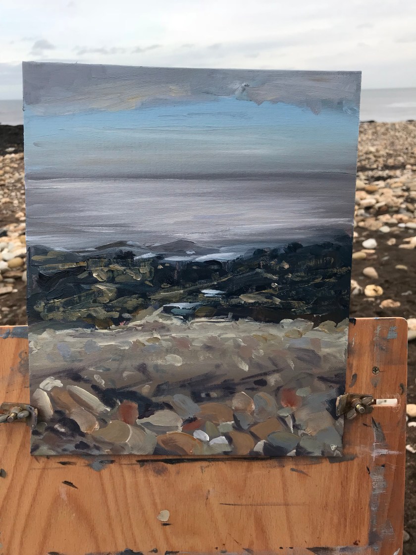 Having done one I decided I should tackle the sea head on, and I was fascinated by the rocks that had slowly been appearing as the the sea retreated.