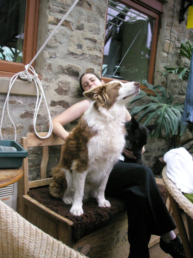 Here he is in his younger days having a back scratch off yours truly. He was a dog that was all character. Bonus points if you can spot Aya!
