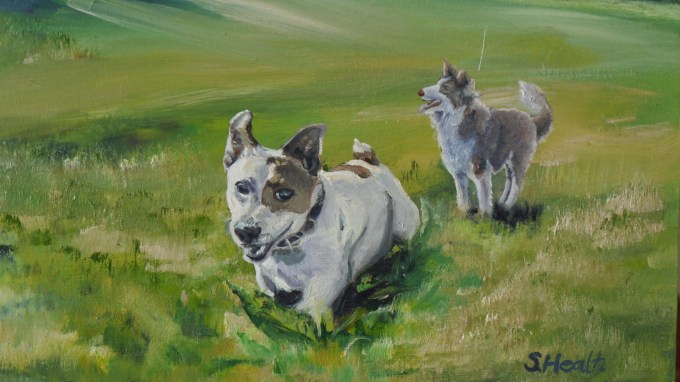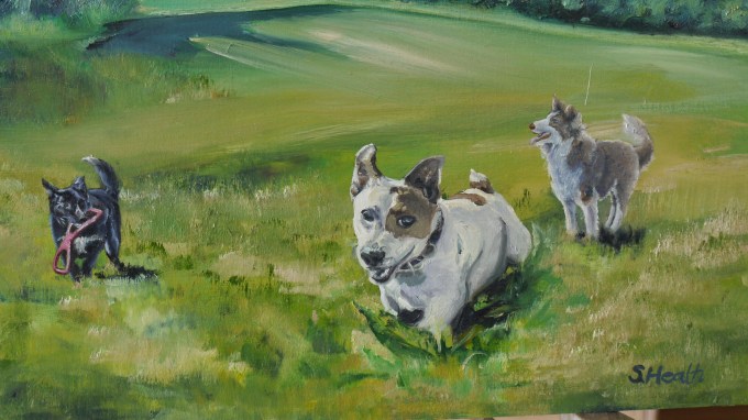 The more eagle eyed among you might notice that my dogs have snuck into a pet portrait commission. You may also notice a fourth animal.
