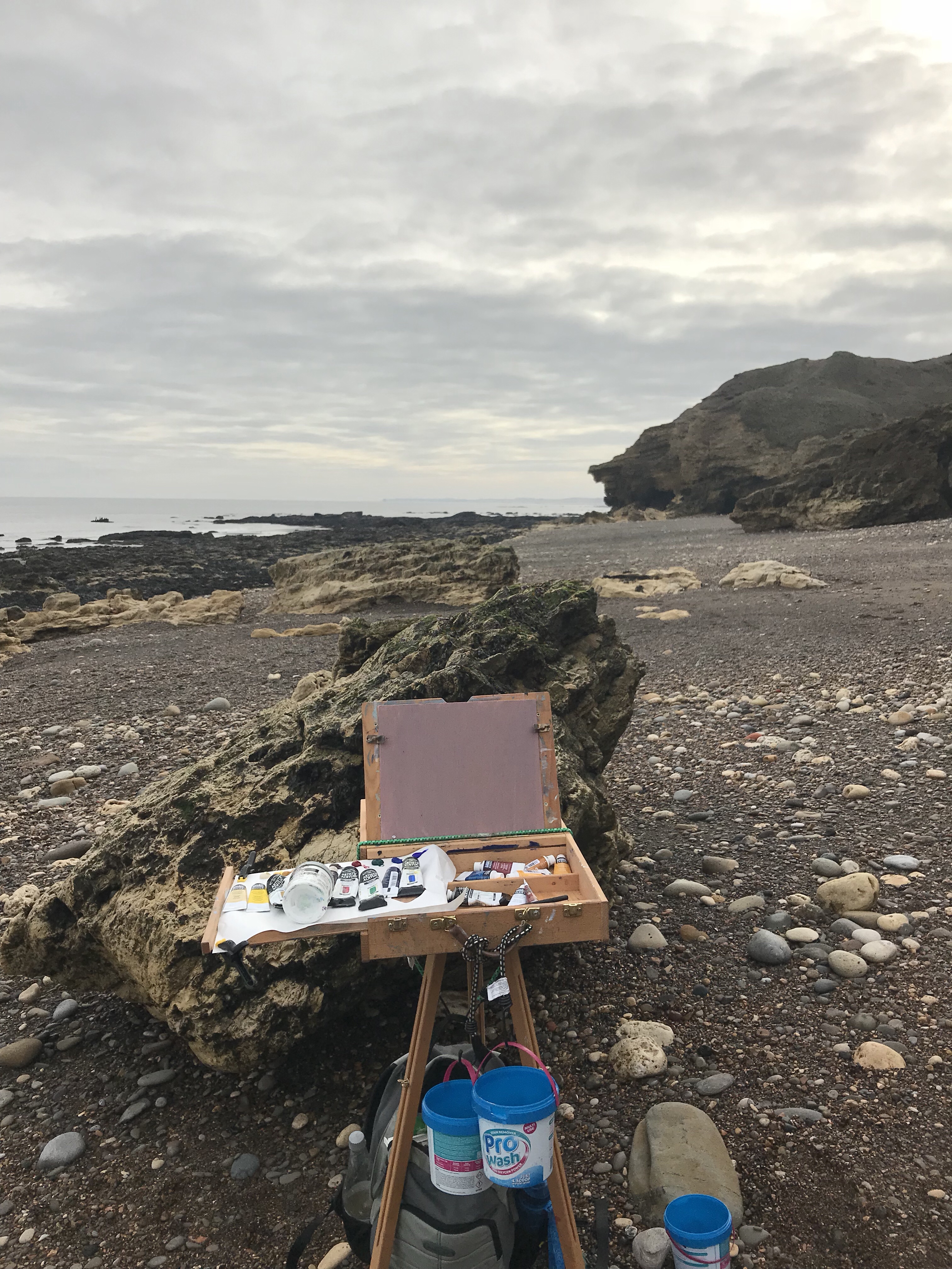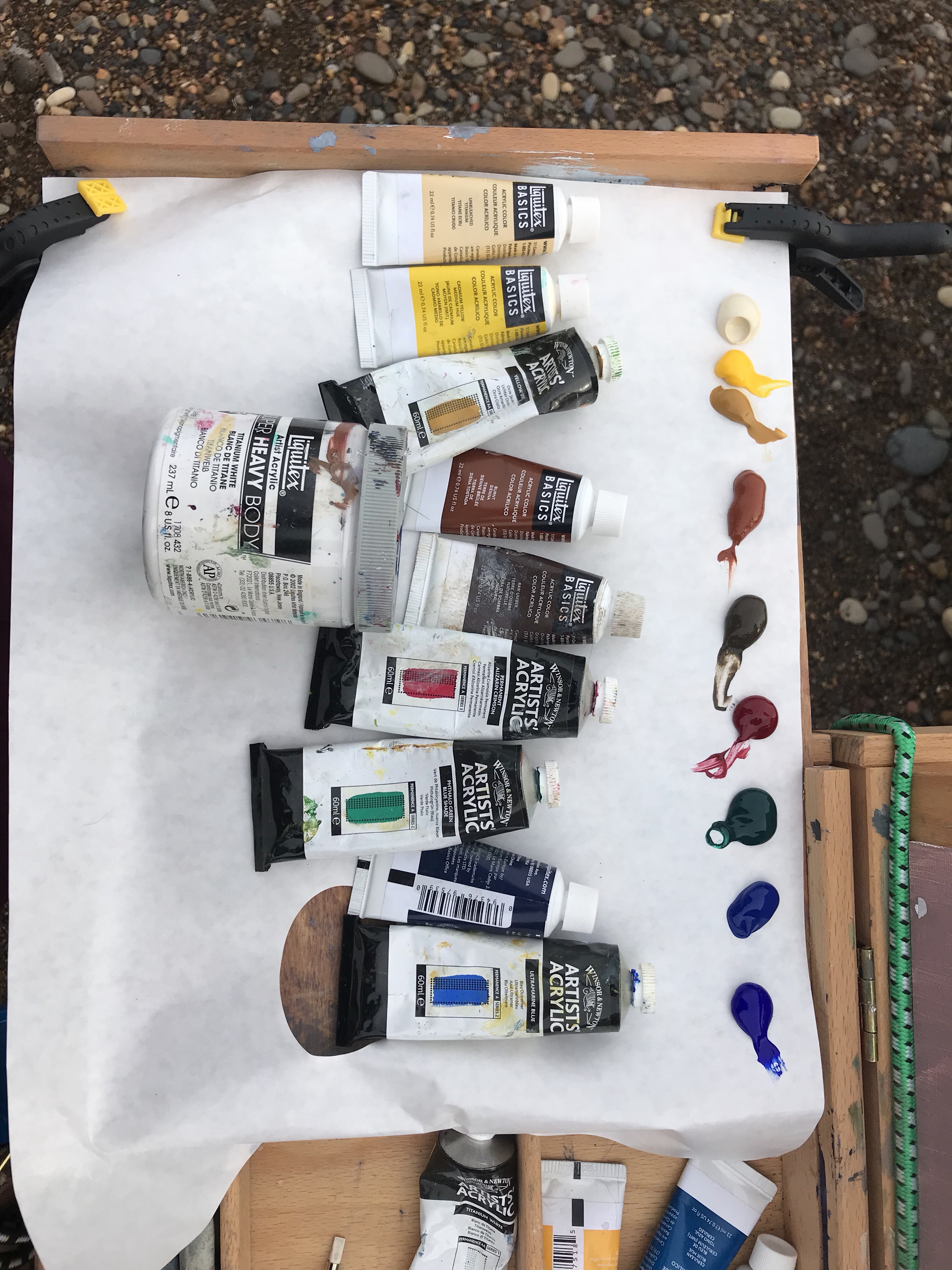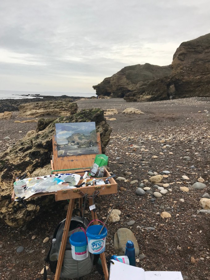 I haven’t. I’ve been an oil painter for 13 years. I have been booked to do a demonstration for acrylic seascapes, hence why I am schlepping all my acrylics to the coast. I live in the north east of England. What is that summer weather you speak of?