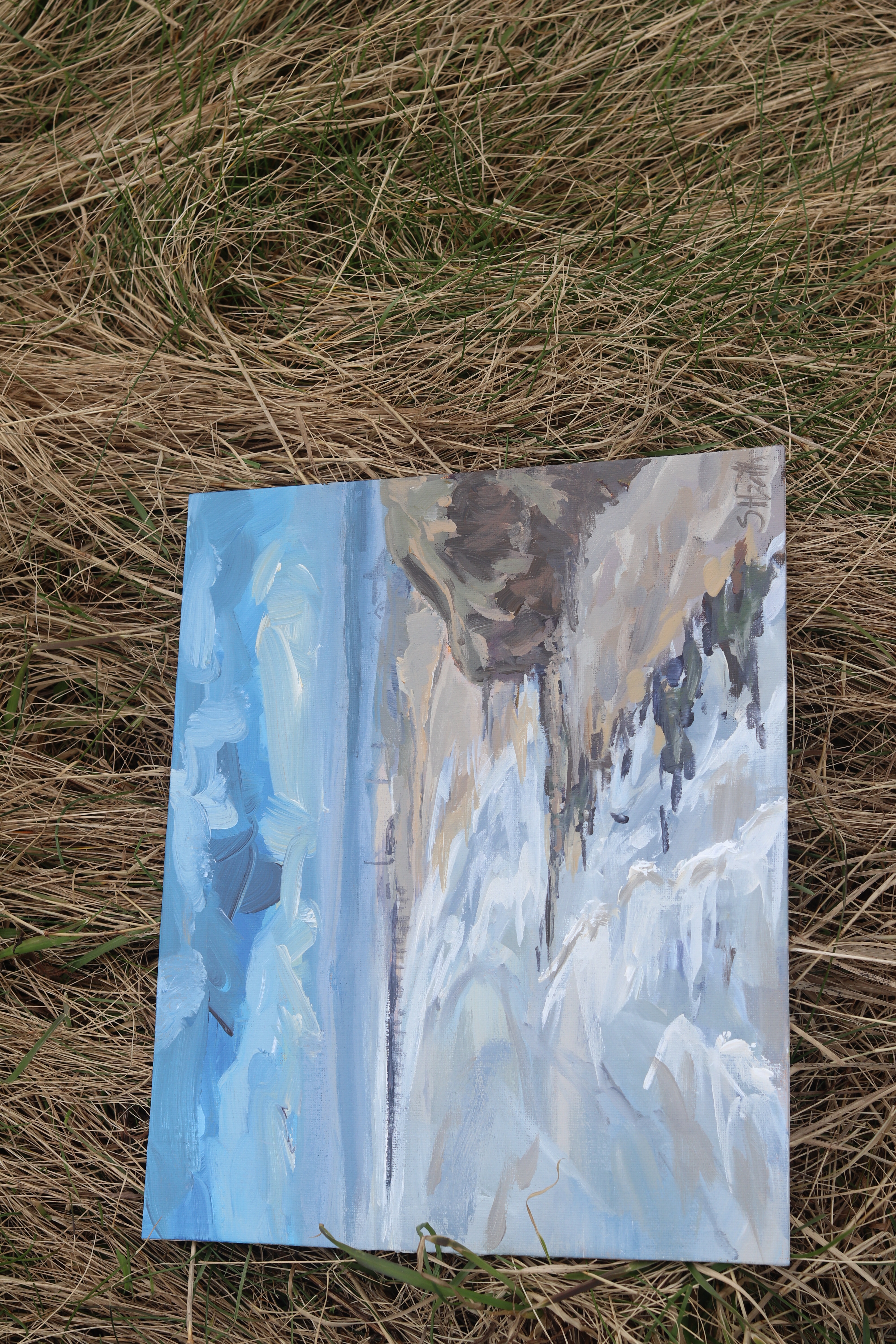 As the tide was going out and exposing more rocks I thought I’d use up my colours and do a quick study of the rocks and waves. I like the movement and the composition, and I believe I got the colours pretty close, but it is lacking in the foamy details. It did pass the mum test though. When I got home and showed her, she was able to identify what it was.