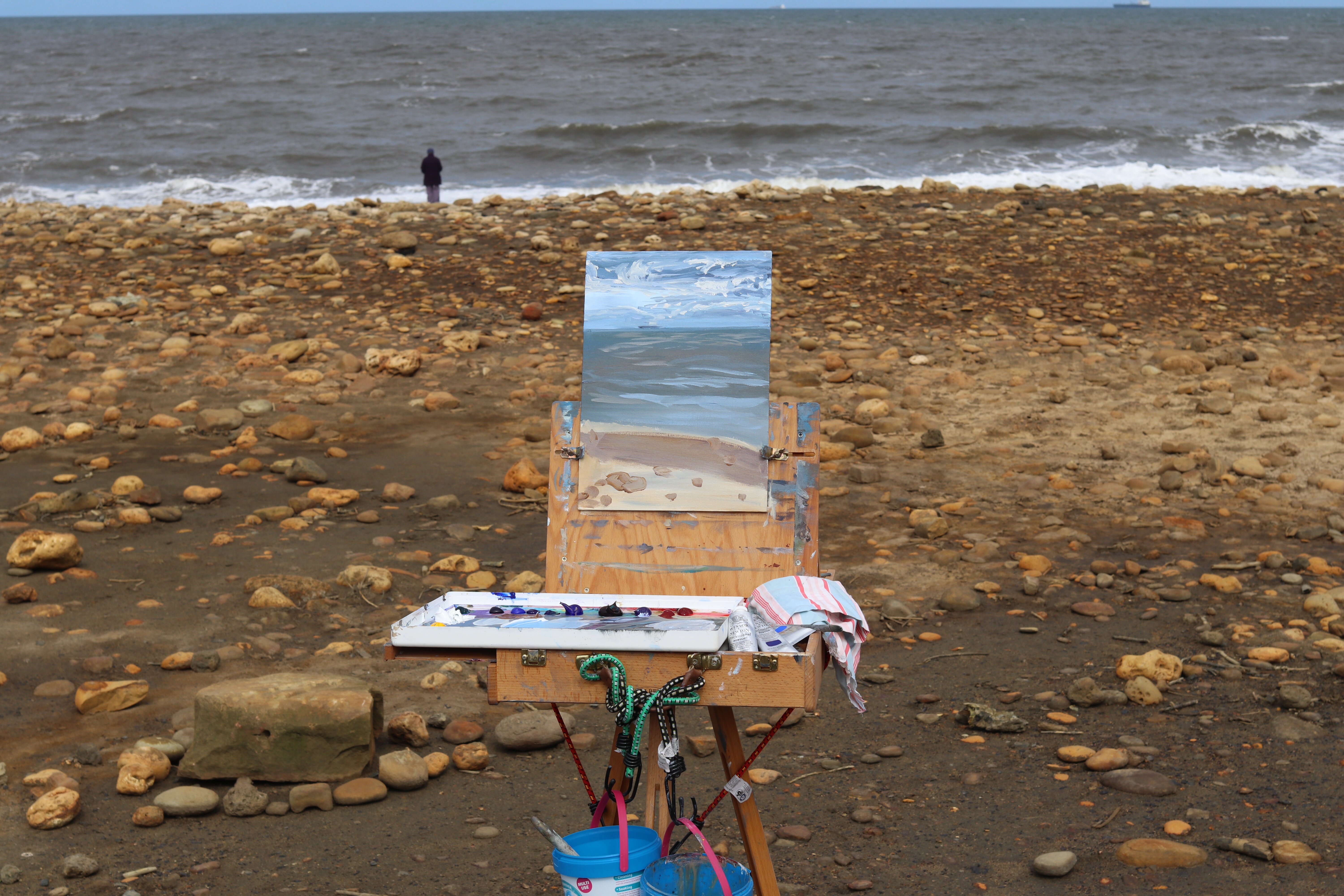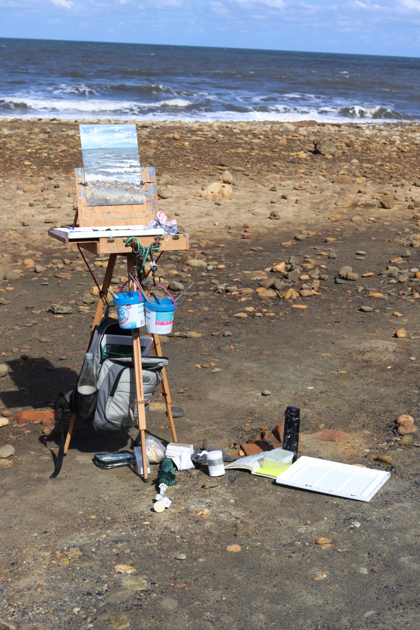 We were chatting to another lady who had done an art A Level as an adult, her parents even attended parents evening. She then went on to do an art degree and was beach combing for sea glass and things to makes jewelry with. She had painted outside once, but a man had parked himself behind her and made disparaging comments. She’s never been out since.