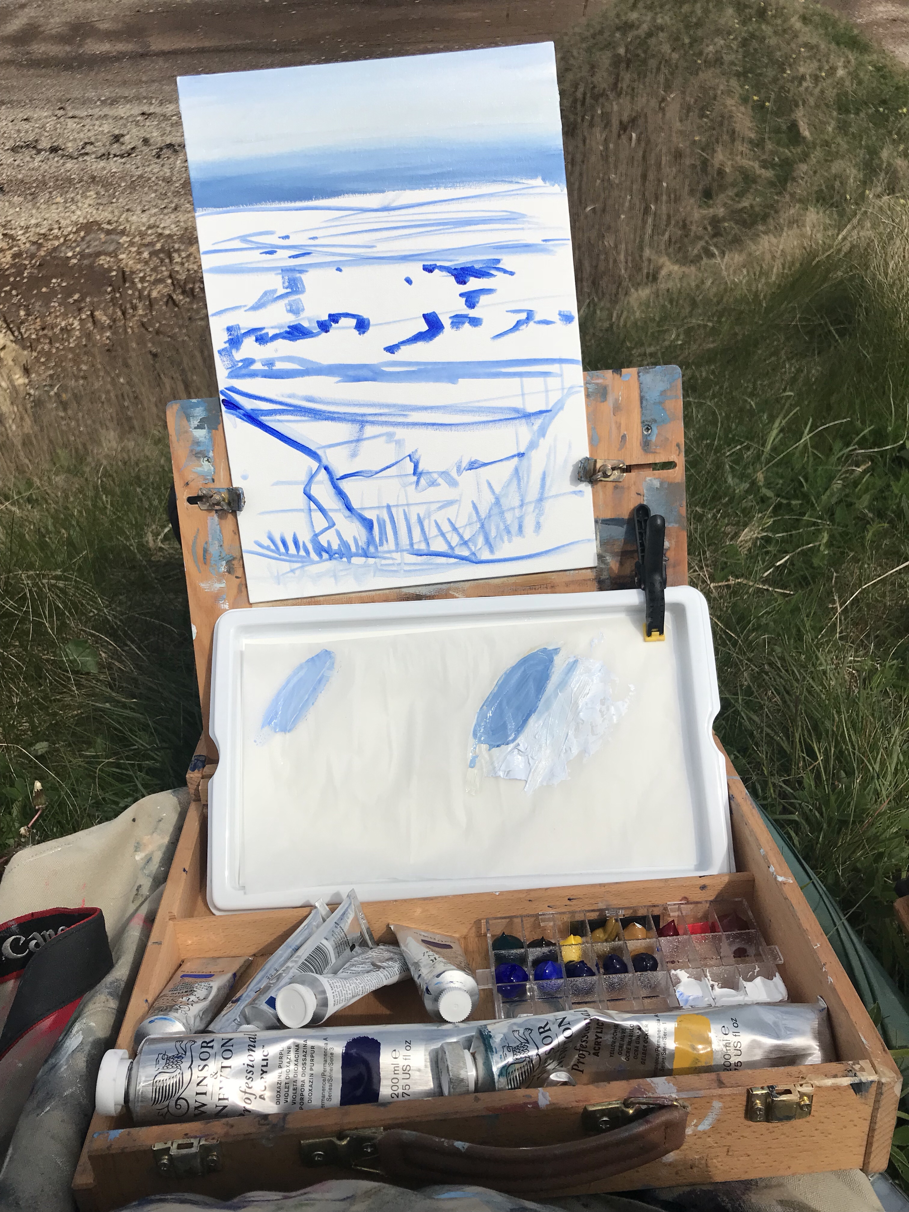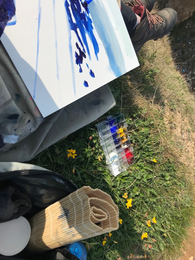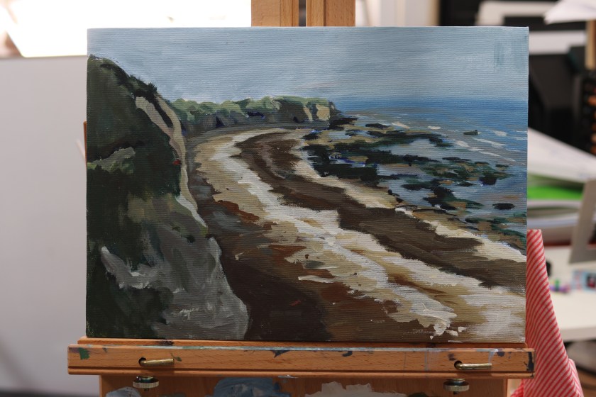 Under drawing of my second painting. I moved further down the cliff and was sat on a ledge that was too narrow for my easel. Unfortunately I was sat in an ant path.