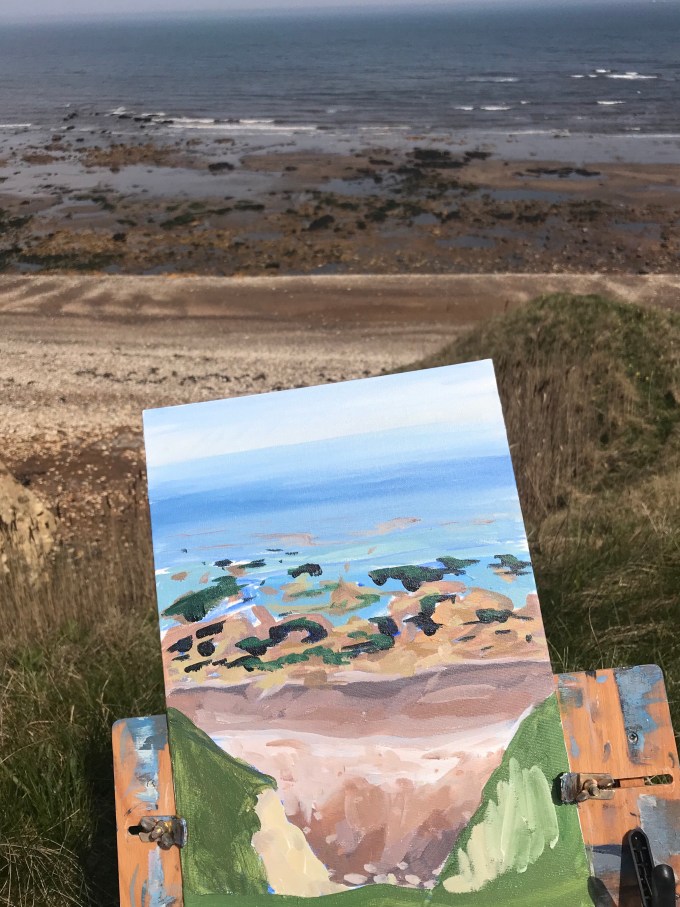The weather was amazing. So good I had to keep misting my acrylics on top of having a stay wet palette. We tucked down on the cliffs down the technically closed stairway and didn’t have to many people going on by. There were loads of rock poolers down on the beach.