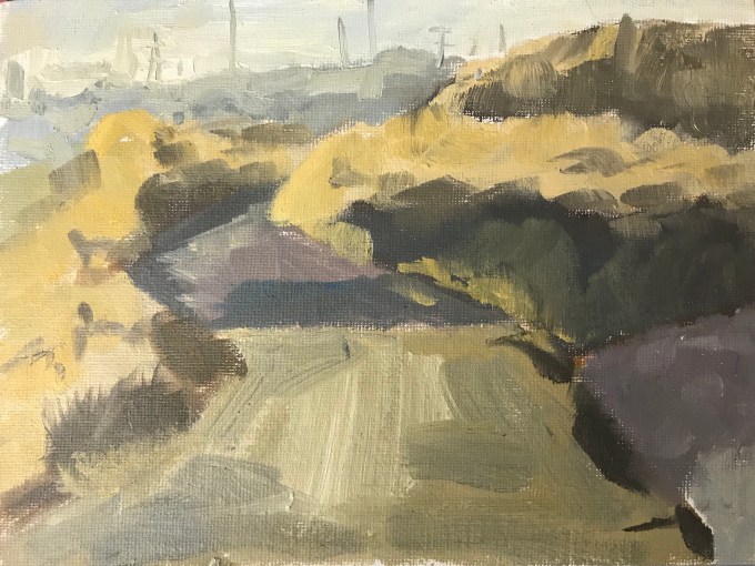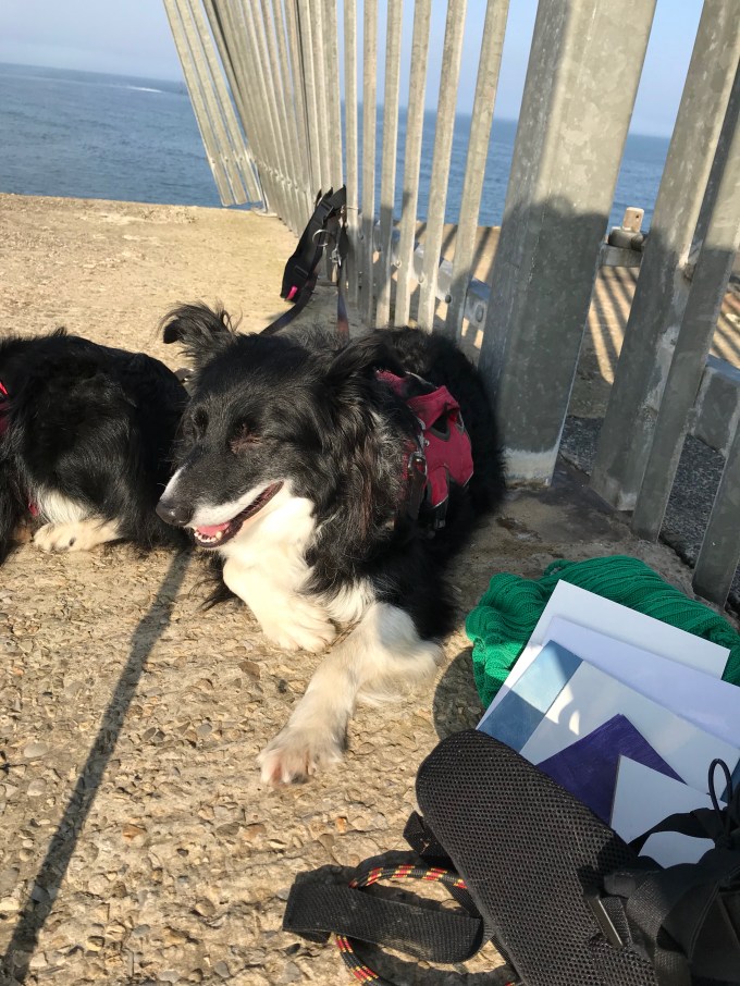 The dogs were so good. Part of that was I’d tied them up so they couldn’t knock my easel over, as a means of getting my attention. Boardercollies are smart like that.