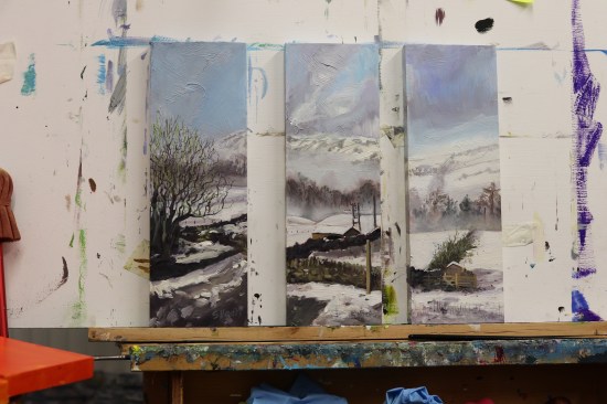 I’m pretty sure I’ve finished these three. On these I worked really hard on composition, tonal values and and my colours. Any comments and criticisms are welcome. From left to right: bird feeding tree, field shelter and hen house. Am I genius at naming things or what? And now I’m planning for the next ones….