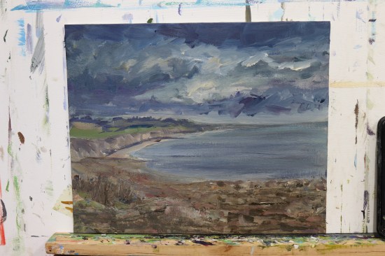 I set off on my own, to get some painting in. My studio assistants were not amused, the walking boots going into the car meant they should be going. Again it rained the whole way there, but stopped as I was getting my kit out of the car, giving me a moving inspiration of cloudy […]